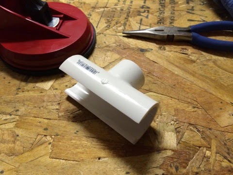 Glue and snap the PVC snap tee right onto the handle of the suction cup lifter.