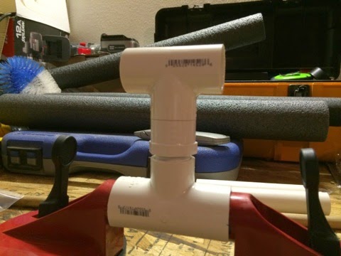 Cut the foam to length and slip over the top of the PVC. I secured it with zip ties and then electrical tape.